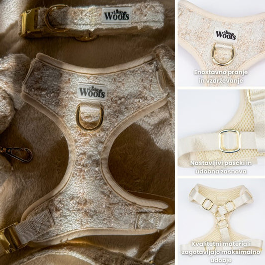 Naši pasje oprsnice imajo nastavljive pasove in so izdelane iz visokokakovostnih materialov, ki zagotavljajo popolno prileganje in maksimalno trpežnost. Idealne za vsakodnevne sprehode in zunanje avanture, vsaka oprsnica Lucky Woofs združuje funkcionalnost z modnimi dizajni.